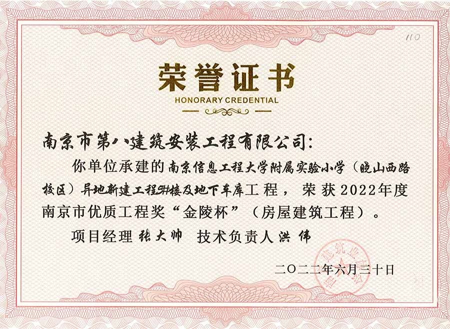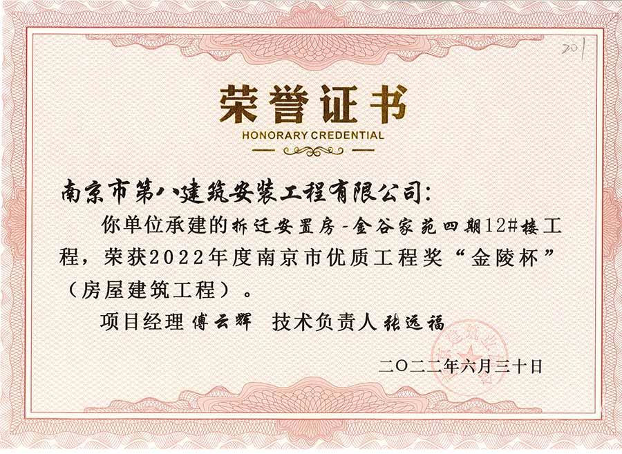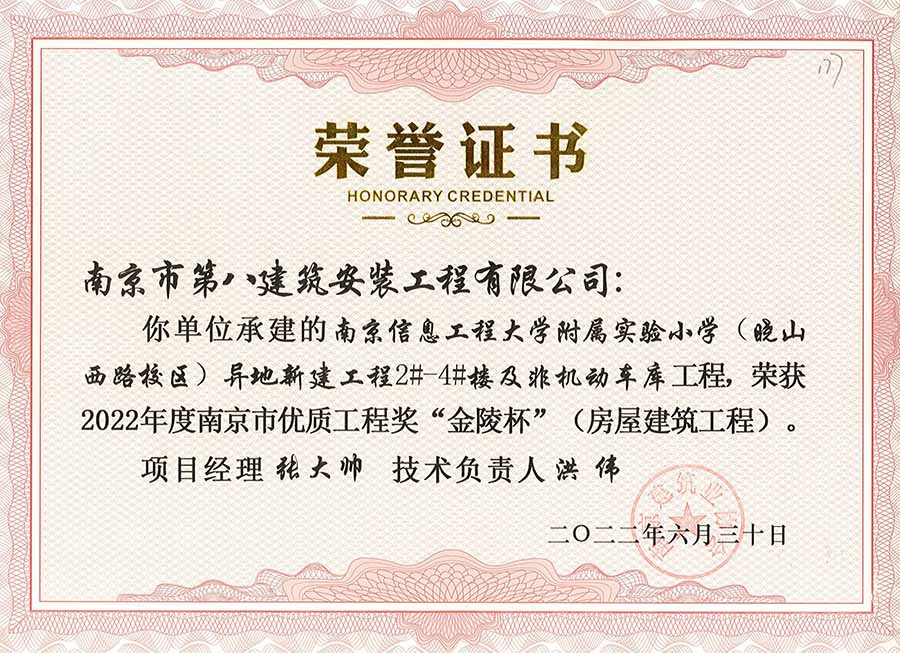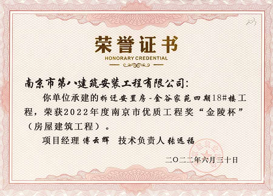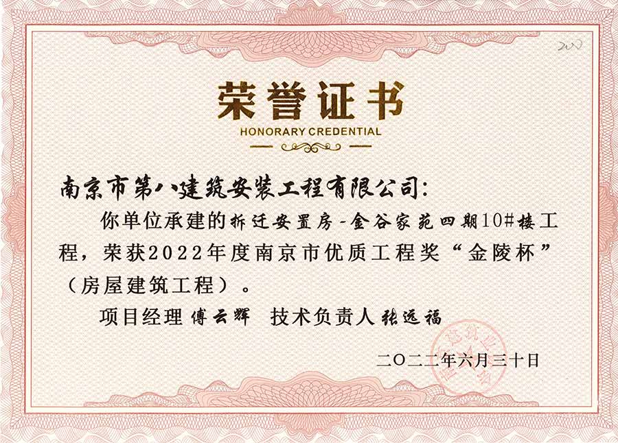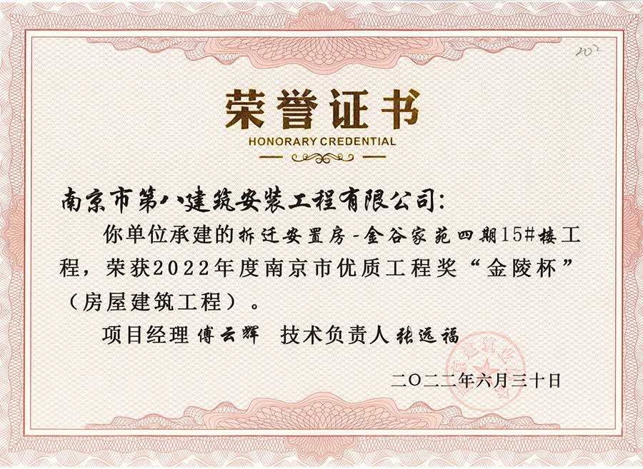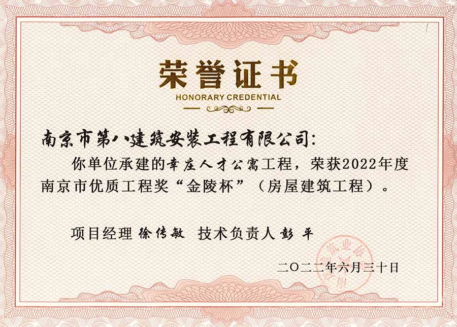 6月30日,南京建協(xié)下發(fā)了(2022)24號文件《關(guān)于公布2022年南京市優(yōu)質(zhì)工程獎“金陵杯”(房屋建筑類、軌道交通工程)項目名單的通知》,決定授予“幸莊人才公寓”等208個項目為2022年南京市優(yōu)質(zhì)工程獎“金陵杯”,我公司承建的13個項目榮獲榮譽(yù)。